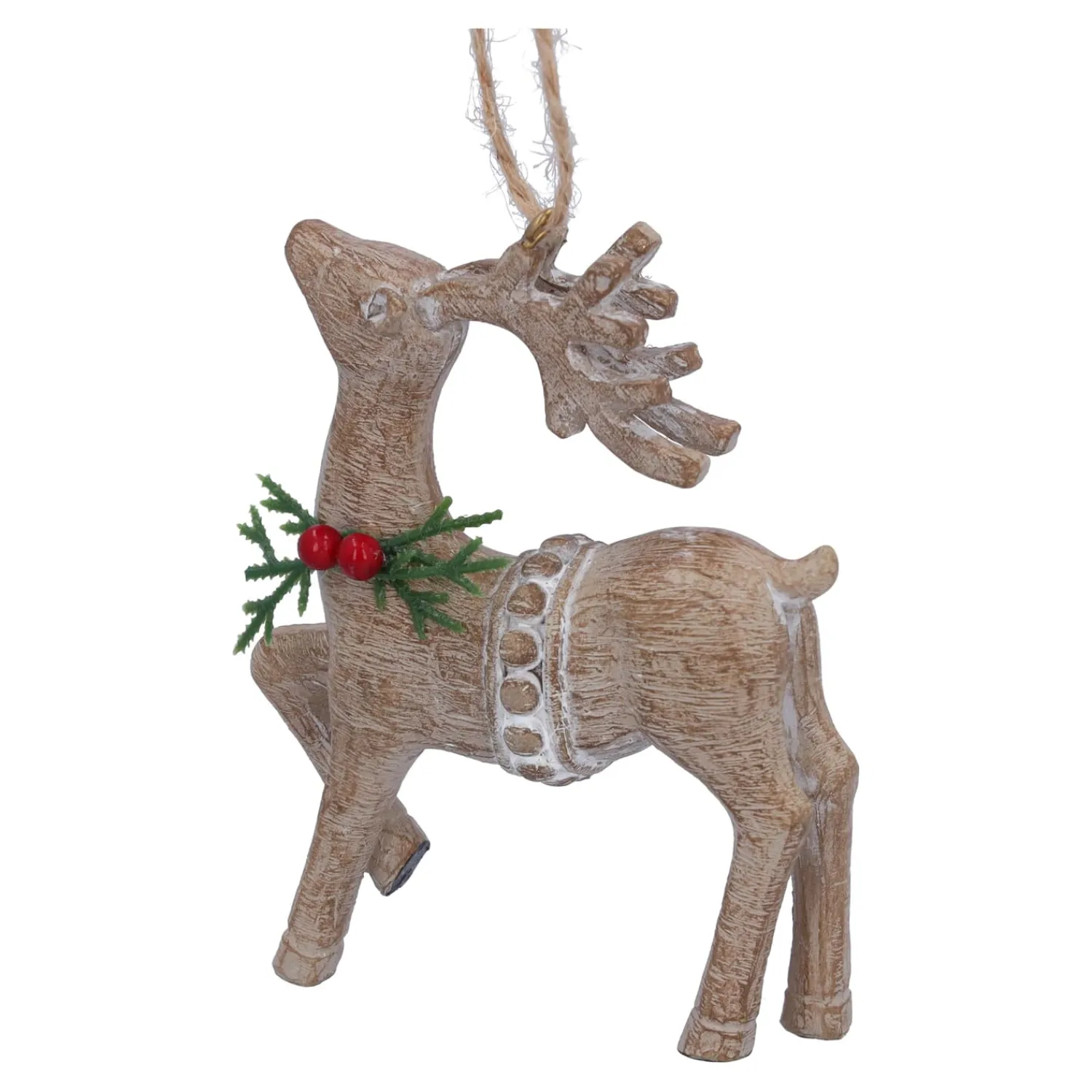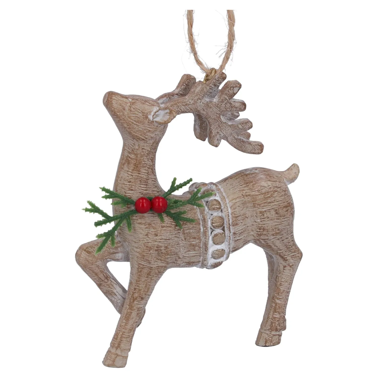 Dieser charmante Hirsch aus Kunstharz ist die perfekte Ergänzung für Ihre Weihnachtsdekoration! Liebevoll gestaltet, mit einem zarten Mistelkranz um den Hals und einer rustikalen Holzoptik, bringt er einen Hauch von Waldweihnacht in Ihr Zuhause. Ob am Baum oder im Fenster hängend – dieser süße Hirsch erobert alle Herzen im Sturm.