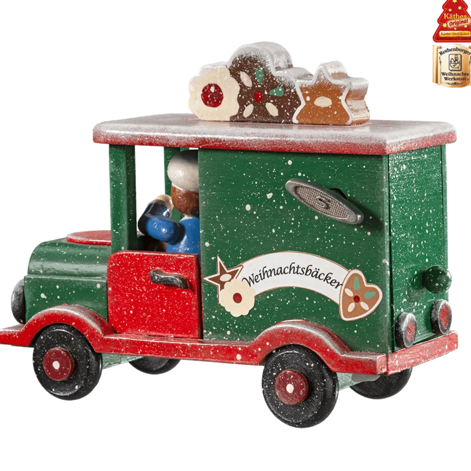 In seinem rot-grünen Oldtimer kommt die mobile Weihnachtsbäckerei auch gerne in Ihre Winterwelt! Freudig fährt der Weihnachtsbäcker durch die verschneiten Straßen und läutet mit seinem Glöckchen um auf sich und seine Leckereien aufmerksam zu machen: Lebkuchen, Vanillekipferl, Butterplätzchen, Spitzbuben, Makronen, Früchtebrot, Christstollen und vieles mehr! Die Freude im Dorf ist groß!