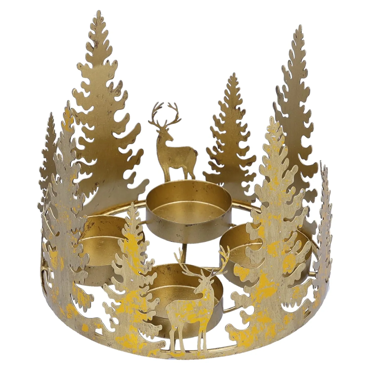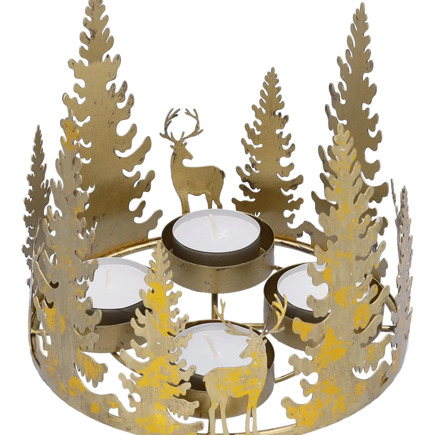 Die Szenerie mit den Hirschen im Wald kann von vier Teelichtern im Hintergrund beleuchtet werden.