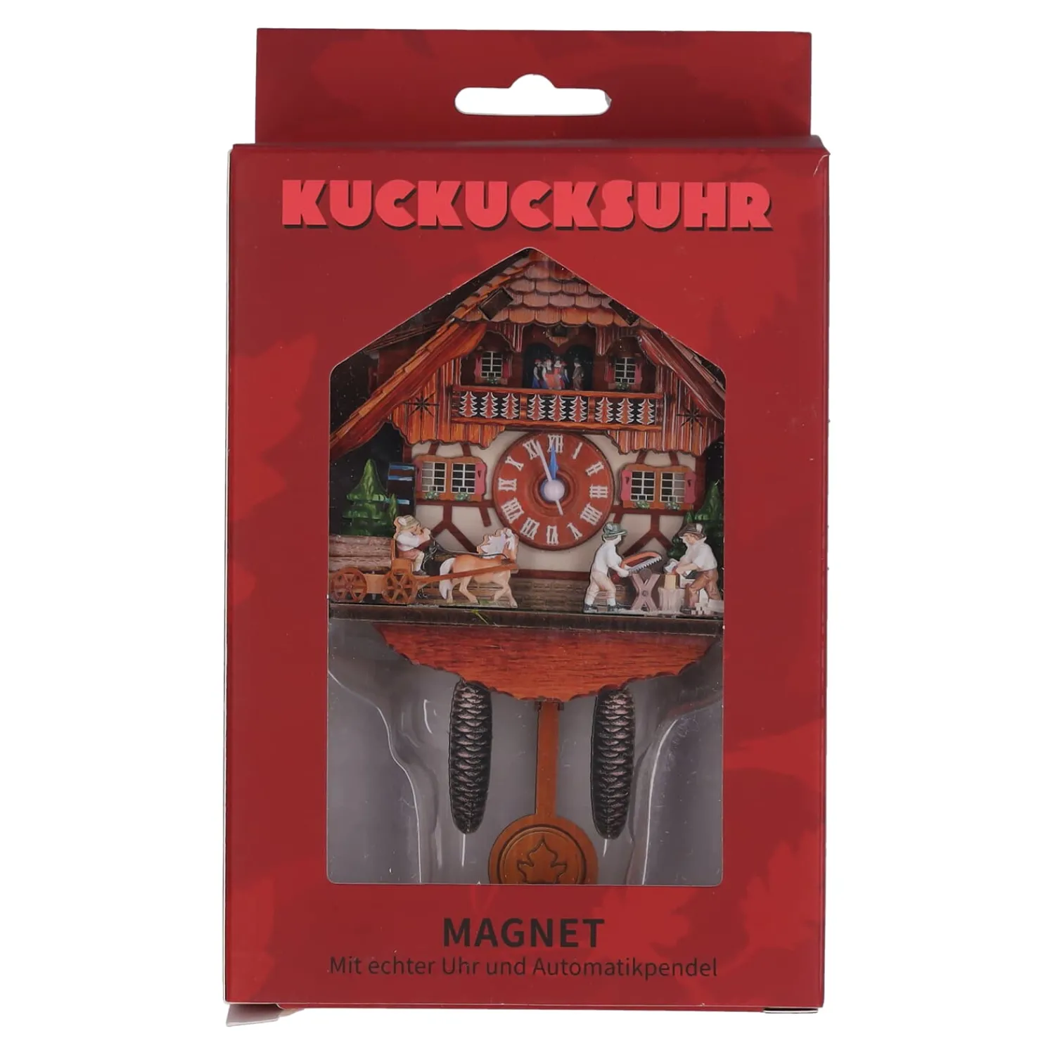 Diese charmante Magnet Kuckucksuhr bringt authentisches Hüttenflair direkt in Ihr Zuhause – und das nicht nur als Dekoration: Die Uhr ist voll funktionsfähig! Liebevoll gestaltet zeigt sie typische Szenen aus dem Schwarzwald, darunter Holzfäller, ein Pferdegespann mit Karren und detailreiche Fachwerkarchitektur. Die traditionellen Tannenzapfen und das Pendel runden das nostalgische Design perfekt ab. Eine originelle Kombination aus funktionaler Uhr und dekorativem Blickfang für Ihren Kühlschrank oder jede metallische Oberfläche!