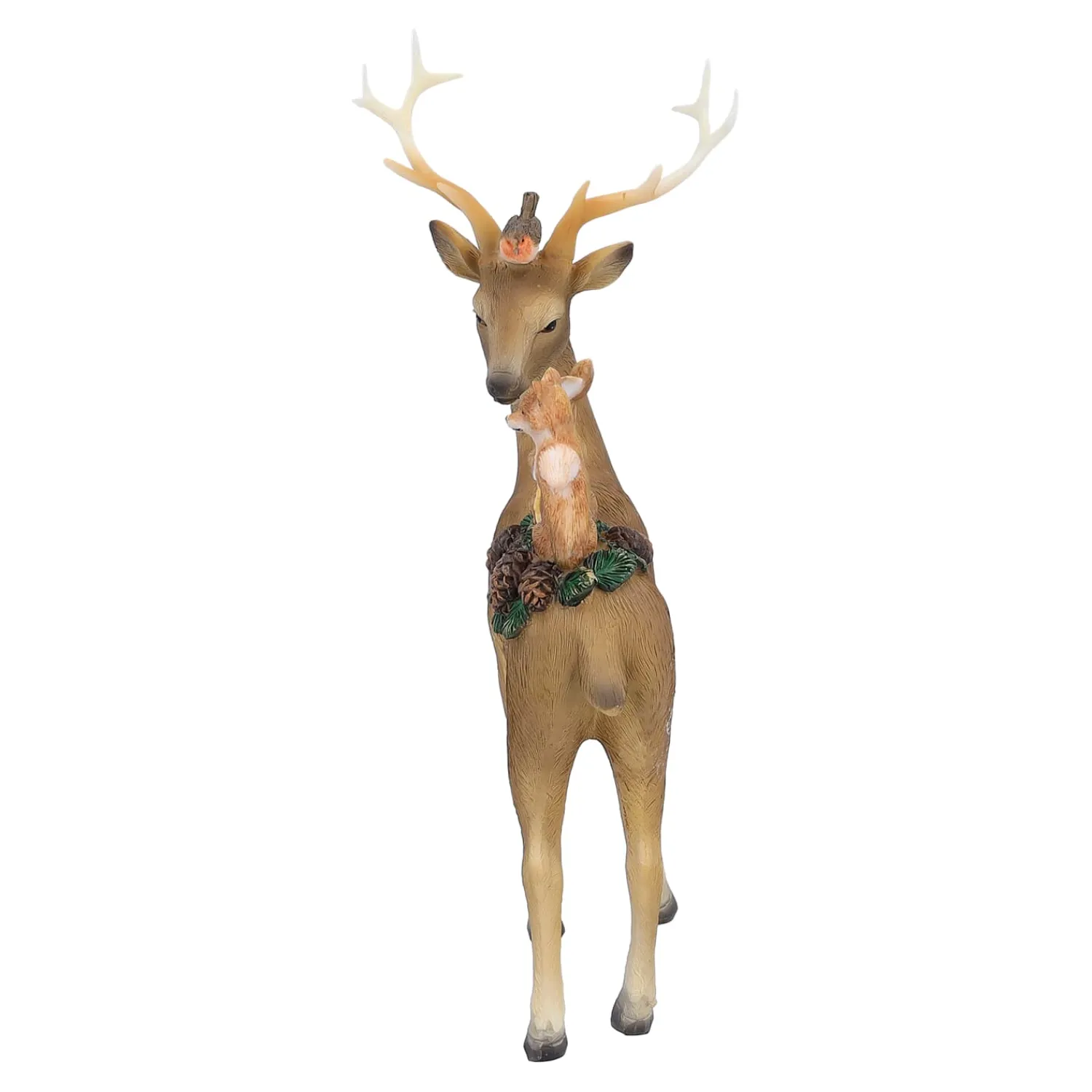 Ein wirklicher Hingucker ist dieser Hirsch mit seinen niedlichen Waldtieren.