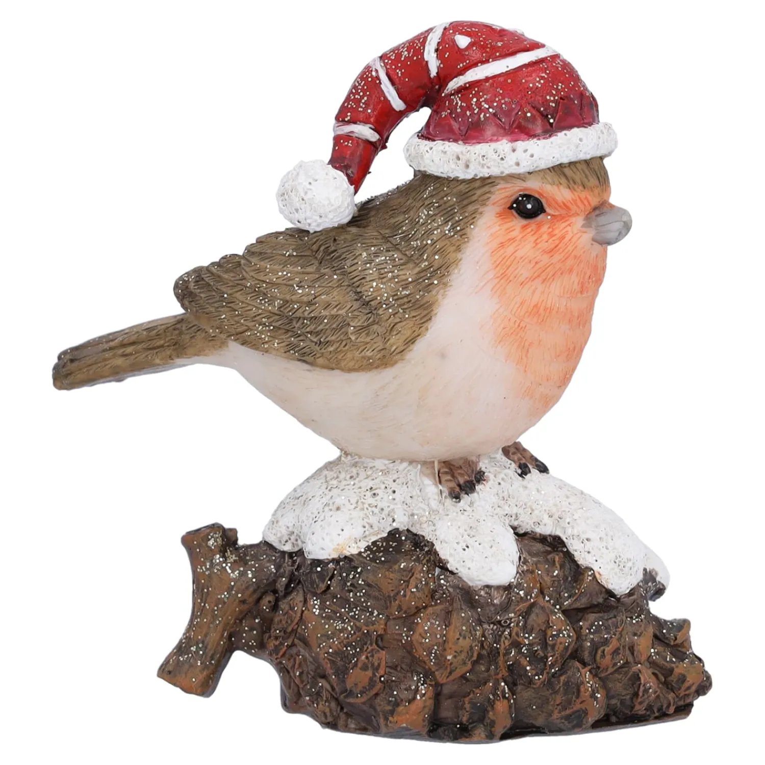 - Rotkehlchen mit Mütze auf Tannenzapfen