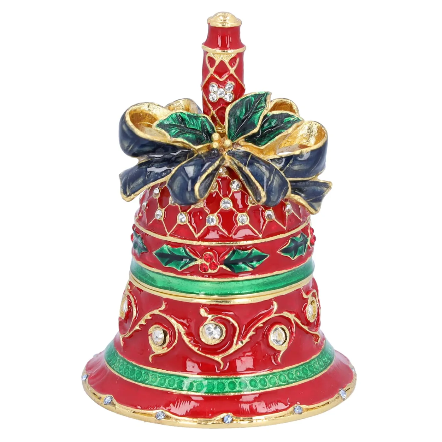 Diese edle Schatulle in Form einer festlich verzierten Weihnachtsglocke aus Metalllegierung ist nicht nur dekorativ, sondern auch ein praktischer Aufbewahrungsort für kleine Schätze. Mit ihren glitzernden Details und der kunstvollen Gestaltung bringt sie weihnachtlichen Glanz in jedes Zuhause und eignet sich auch wunderbar als Geschenk.