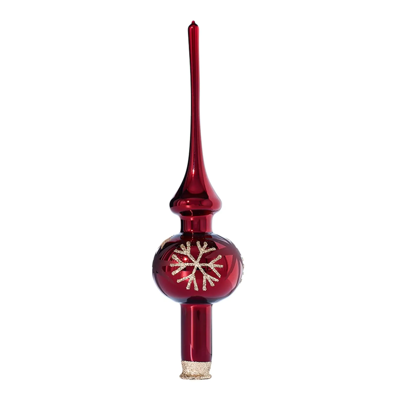 Christbaumspitzen-Baumspitze rot mit goldenen Sternen und Flocken