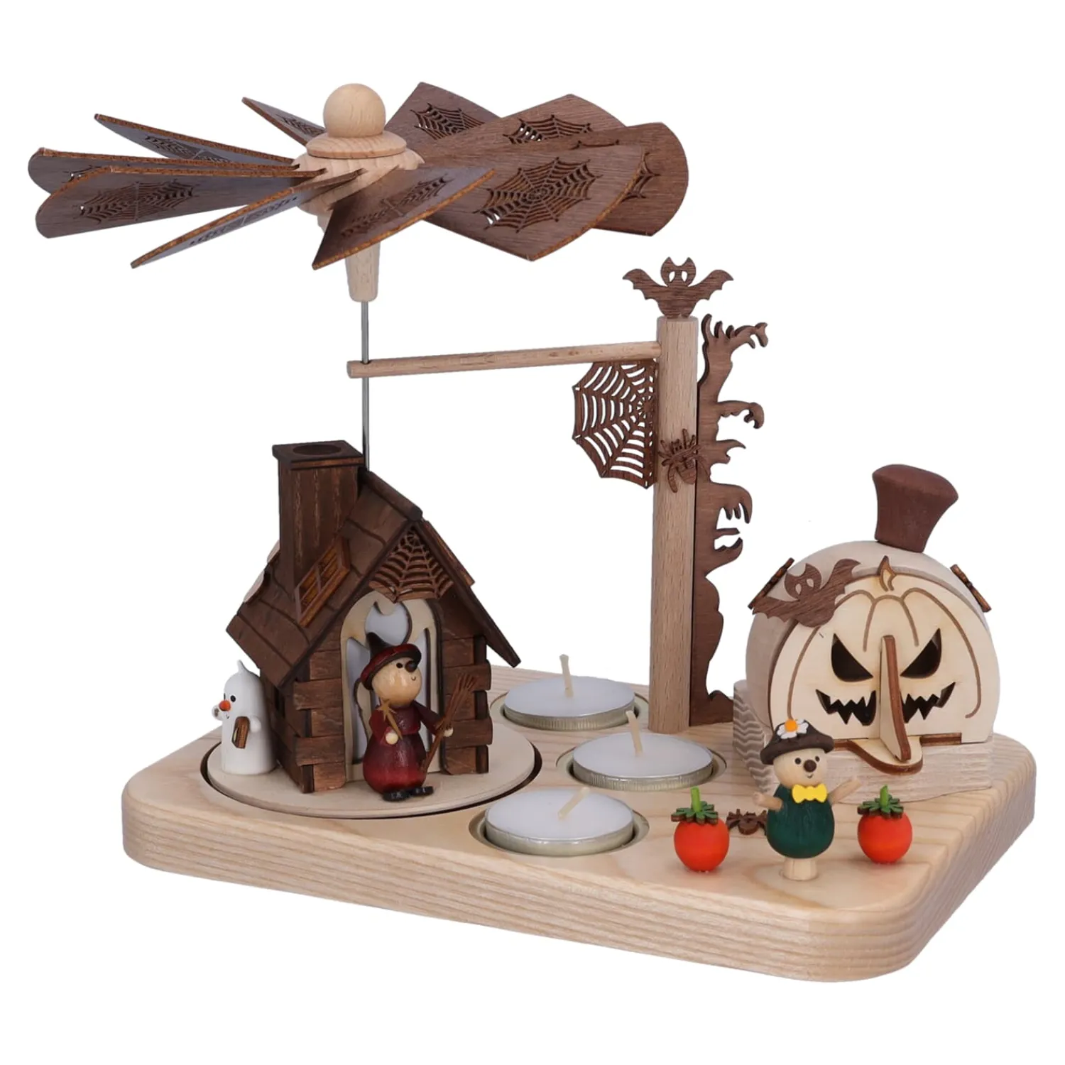 Eine der schönsten Weihnachtstraditionen sind Pyramiden und die Geschichten die sie erzählen. Das durch Kerzenwärme angetriebene Flügelrad zaubert ein wunderbares Spiel aus Licht und Schatten an Decken und Wände.