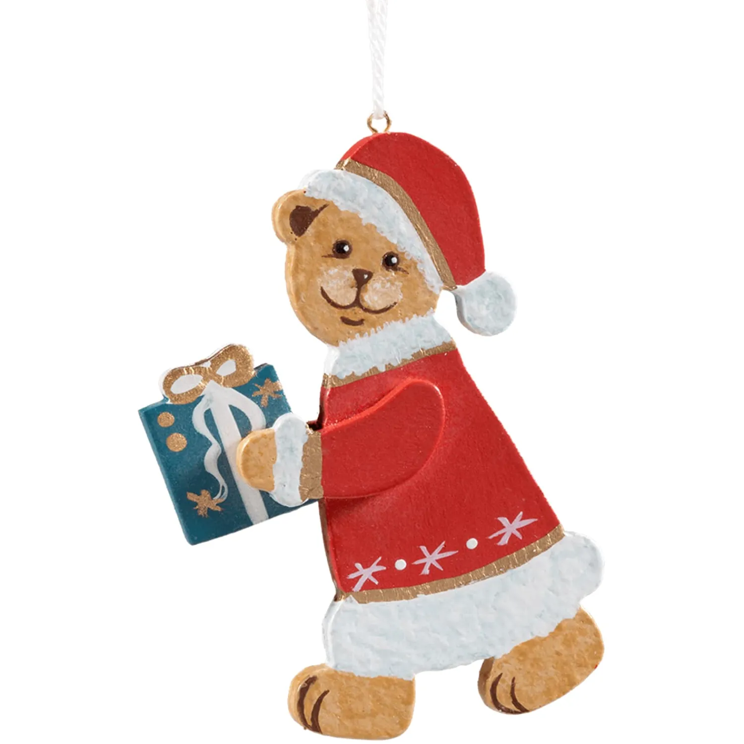 Käthes Original Christbaumschmuck Holz-Weihnachtsteddy mit Geschenk