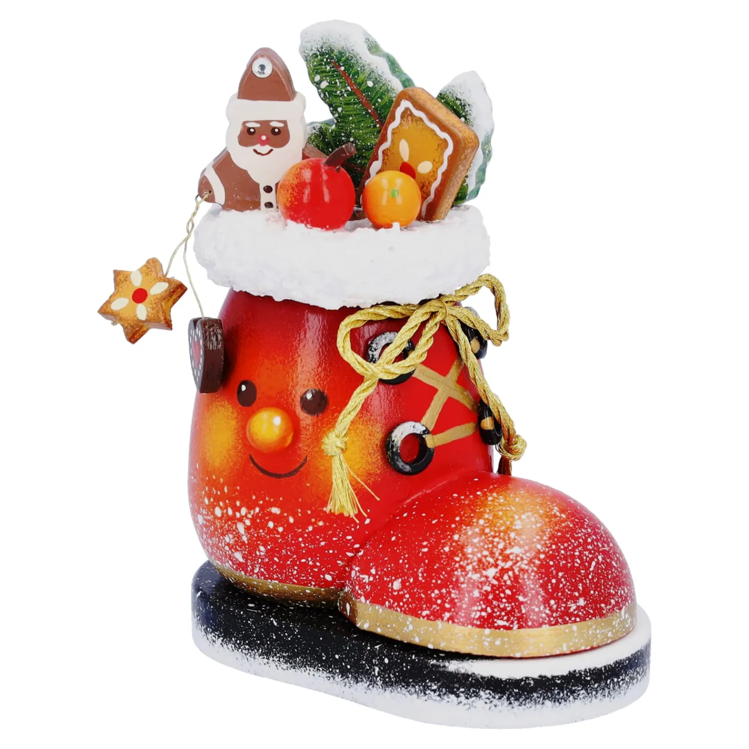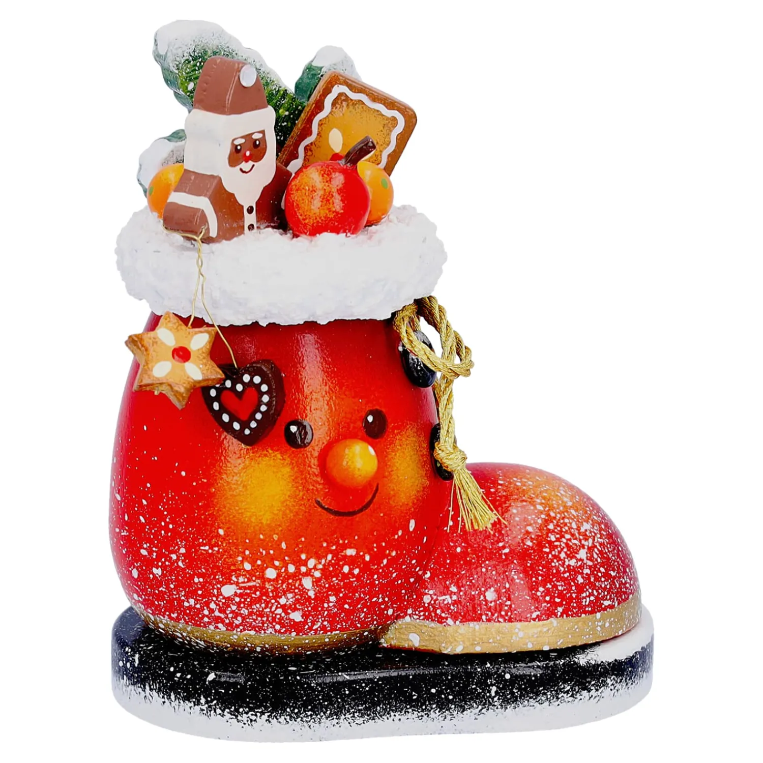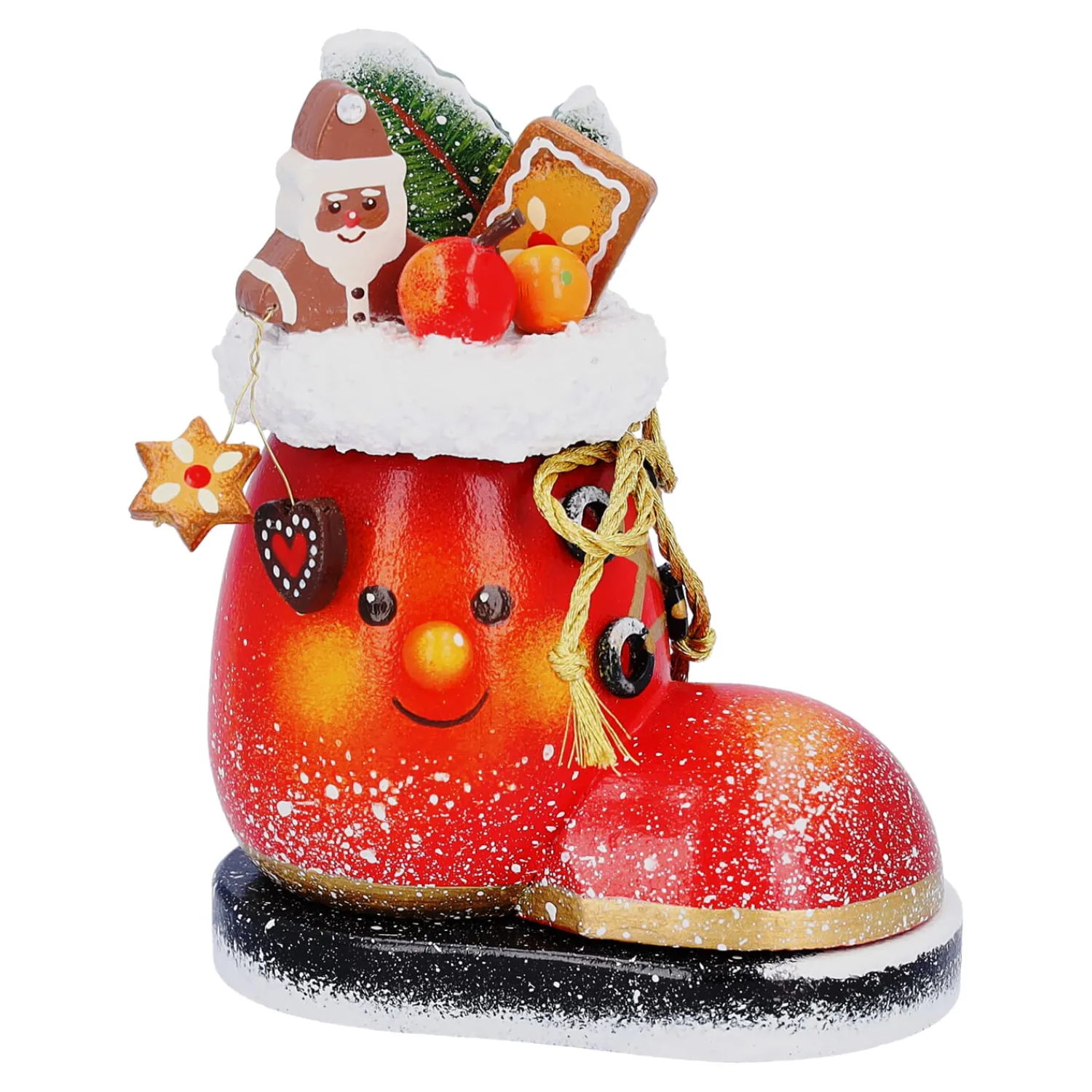 Wenn draußen leise der Schnee fällt und der 6. Dezember näher rückt, beginnt die Zeit kleiner Wunder und freudiger Erwartungen. Der Duftl Nikolausstiefelchen erinnert mit seinem fröhlichen Gesicht, den liebevoll arrangierten Miniaturen und der festlichen Bemalung an jene Momente, in denen man morgens gespannt in die bereitgestellten Stiefel blickte. Als Räuchermännchen verströmt er beim Räuchern einen zarten Weihnachtsduft und lässt so die besinnliche Atmosphäre lebendig werden.