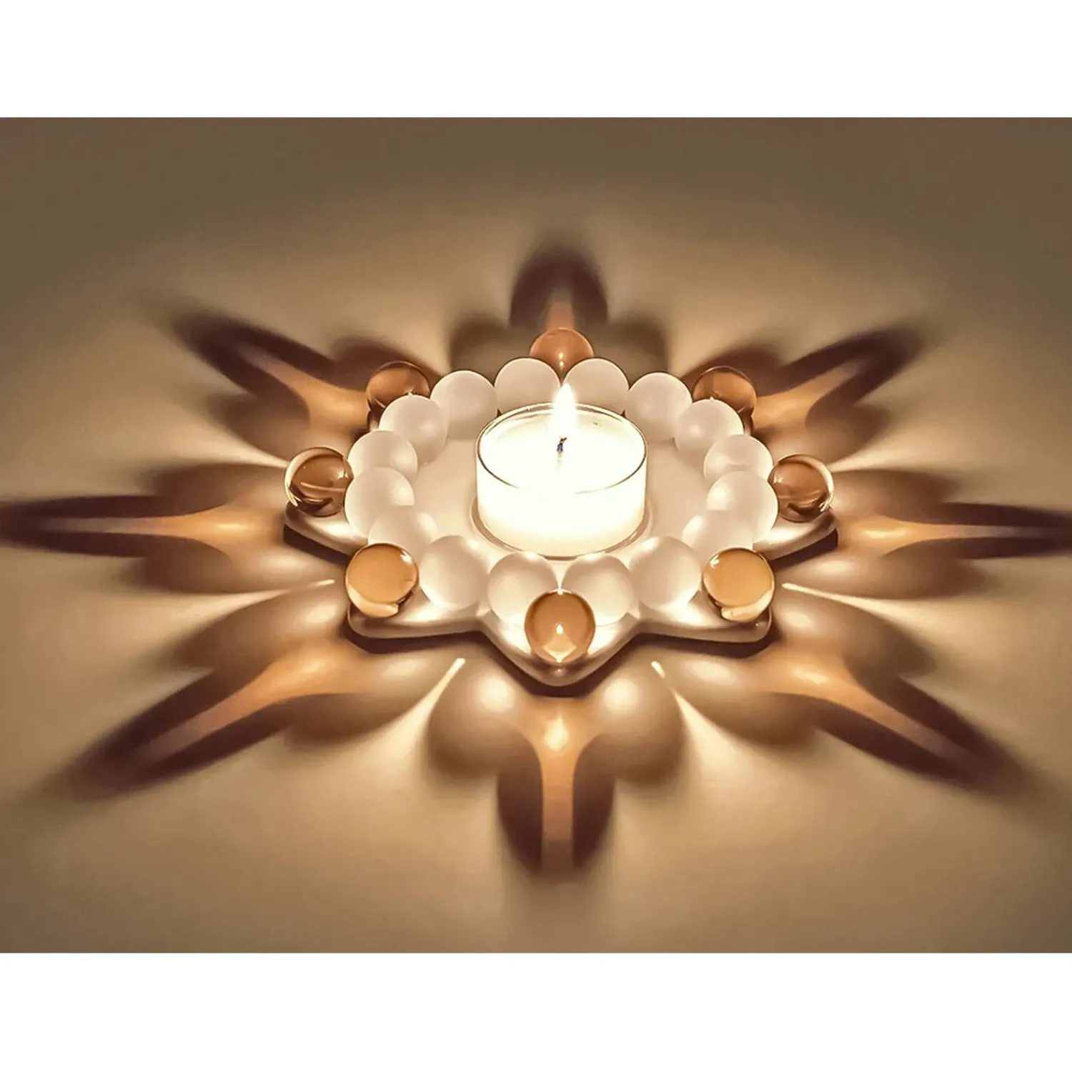 Wird ein Teelicht entzündet, entfaltet der Stern seine wahre Magie: Die transparenten und matten Perlen brechen das Licht auf zauberhafte Weise und tauchen die Umgebung in ein warmes Spiel aus Farbe, Glanz und Schatten. So entsteht eine stimmungsvolle Atmosphäre, die Geborgenheit und Weihnachtsfreude ausstrahlt.