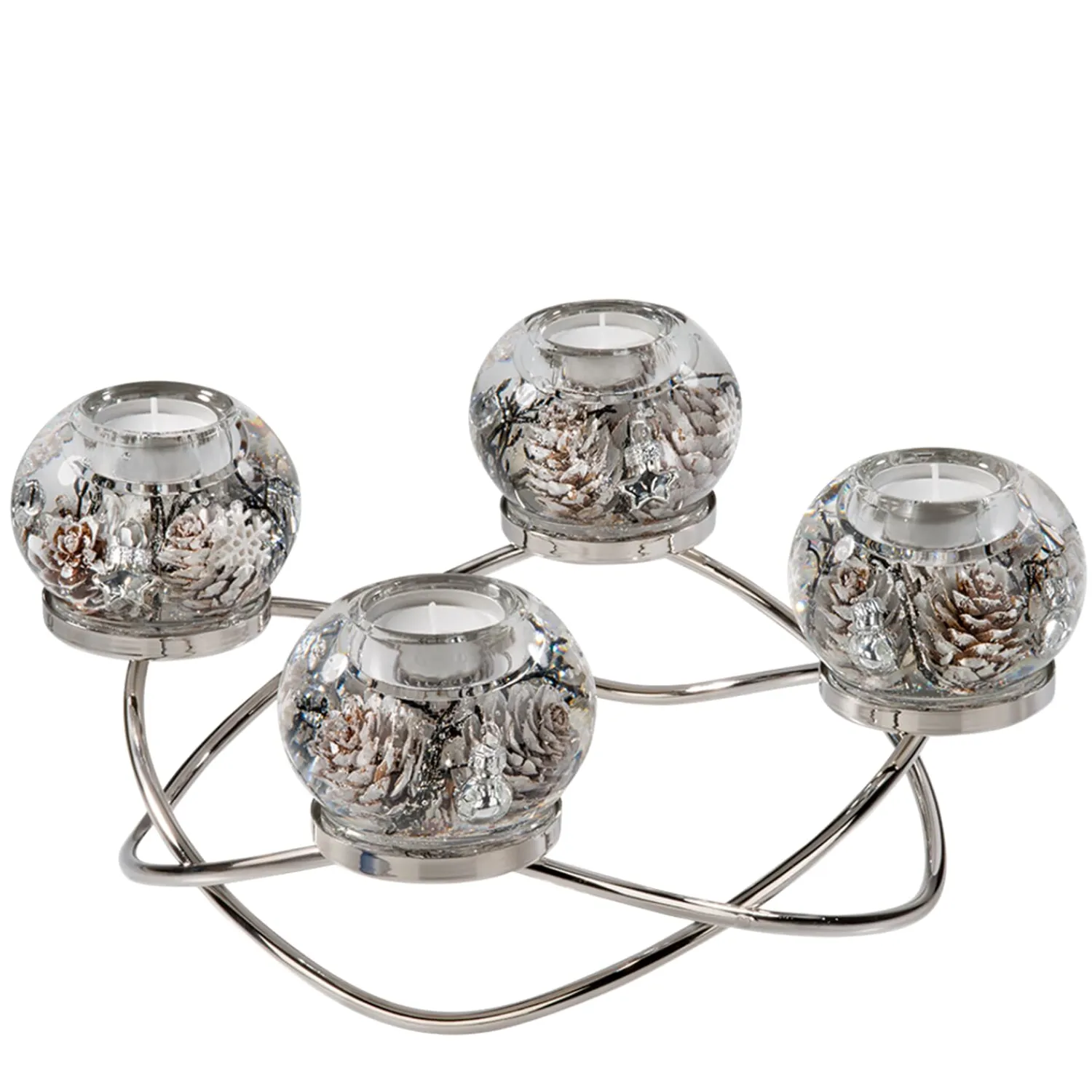 Kerzen & Teelichthalter-Teelichthalter Glasbaum mit weißen Kugeln, silber