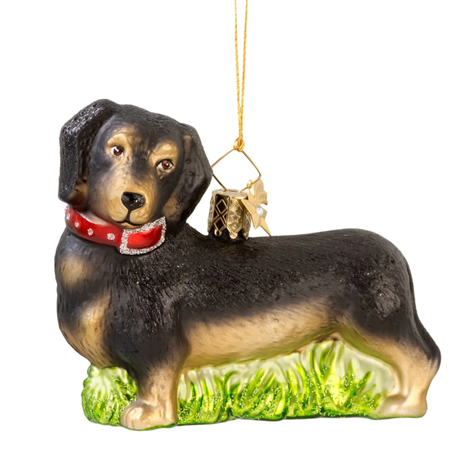 Mit seinem treuen Blick, dem schwarzen Fell und dem charakteristisch langen Körper bringt dieser liebevoll gestaltete Dackel aus Glas ganz viel Persönlichkeit an Ihren Weihnachtsbaum. Er steht für Mut, Wachsamkeit und eine tiefe Verbundenheit – Eigenschaften, die Dackel-Liebhaber auf der ganzen Welt zu schätzen wissen.
