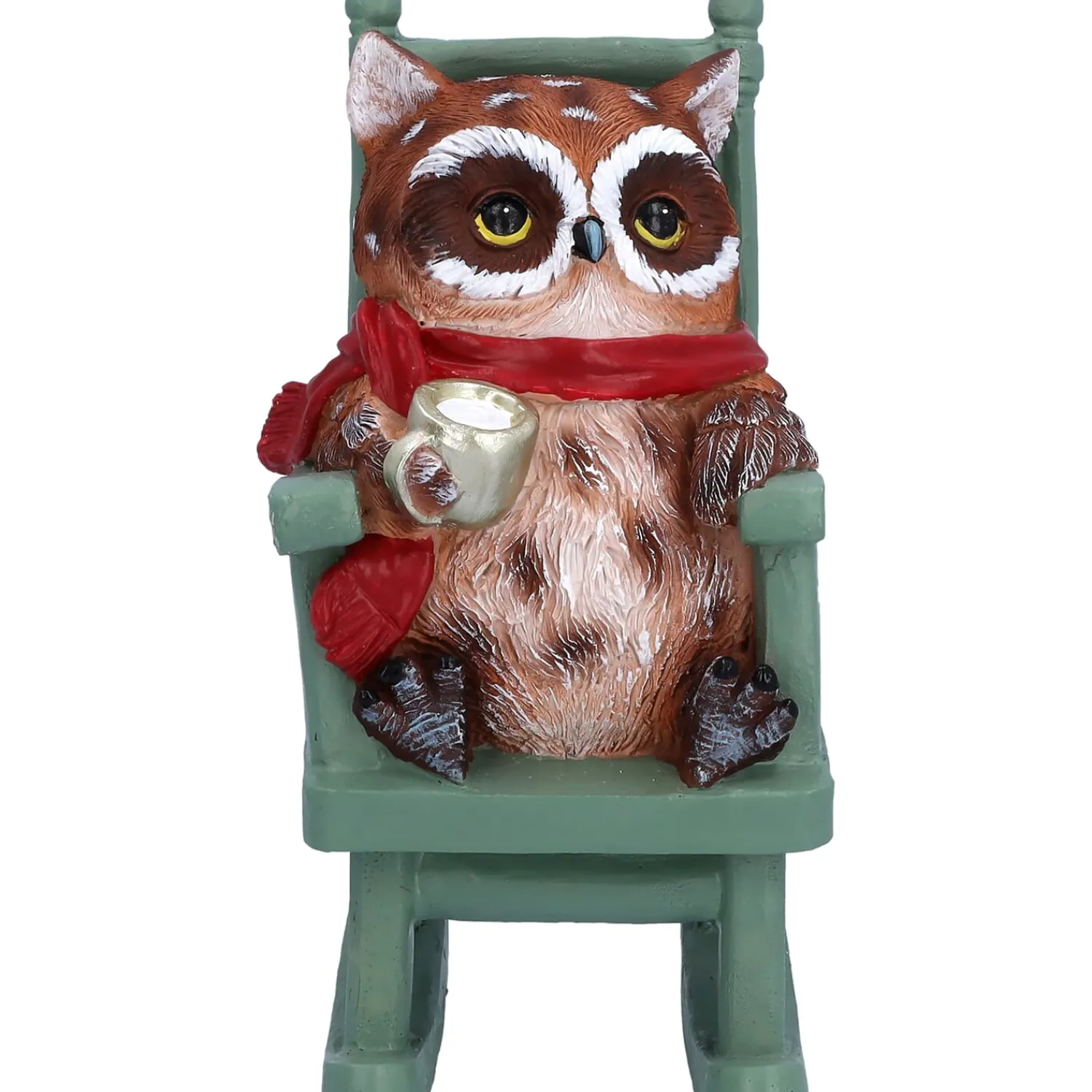 Dekofigur aus Kunstharz, Eule auf Schaukelstuhl