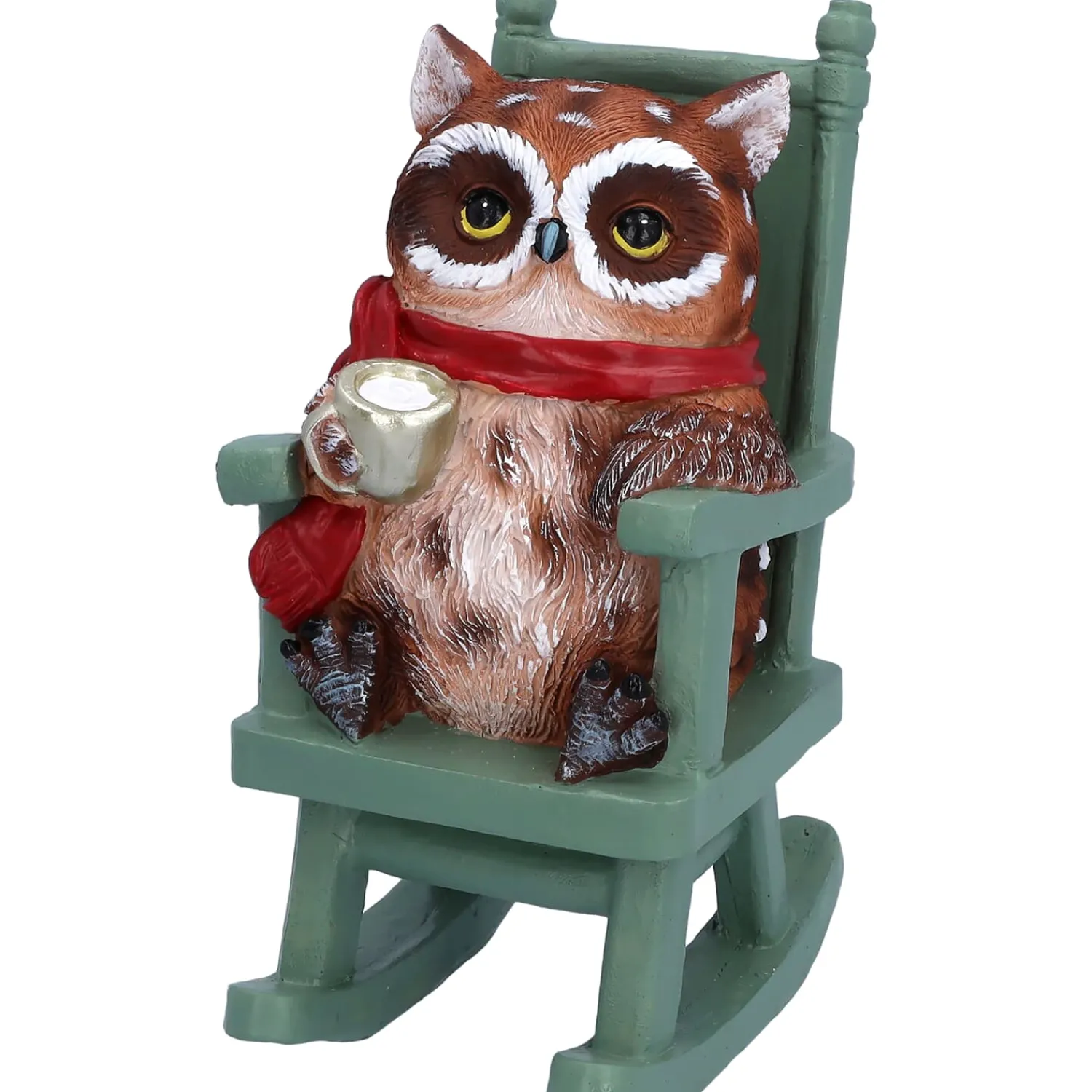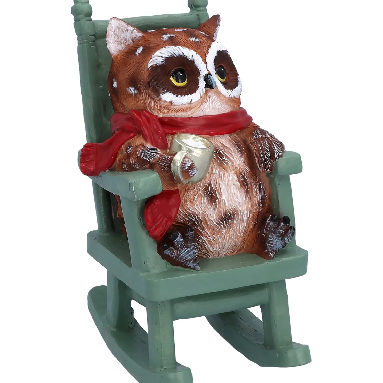 Gemütlich eingekuschelt in ihren roten Schal sitzt diese charmante Eule im Schaukelstuhl und genießt die stillen Momente der Weihnachtszeit mit einem warmen Getränk in der Hand. Sie strahlt eine wohltuende Behaglichkeit aus – als hätte sie den Zauber des Winters ganz für sich entdeckt.