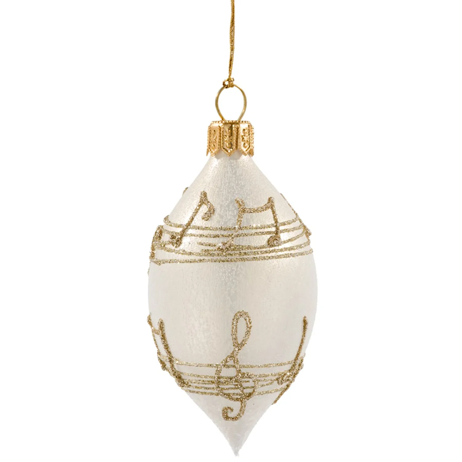 Weihnachtskugeln|Weihnachtskugeln Aus Glas-Olive cremefarben mit Notenband