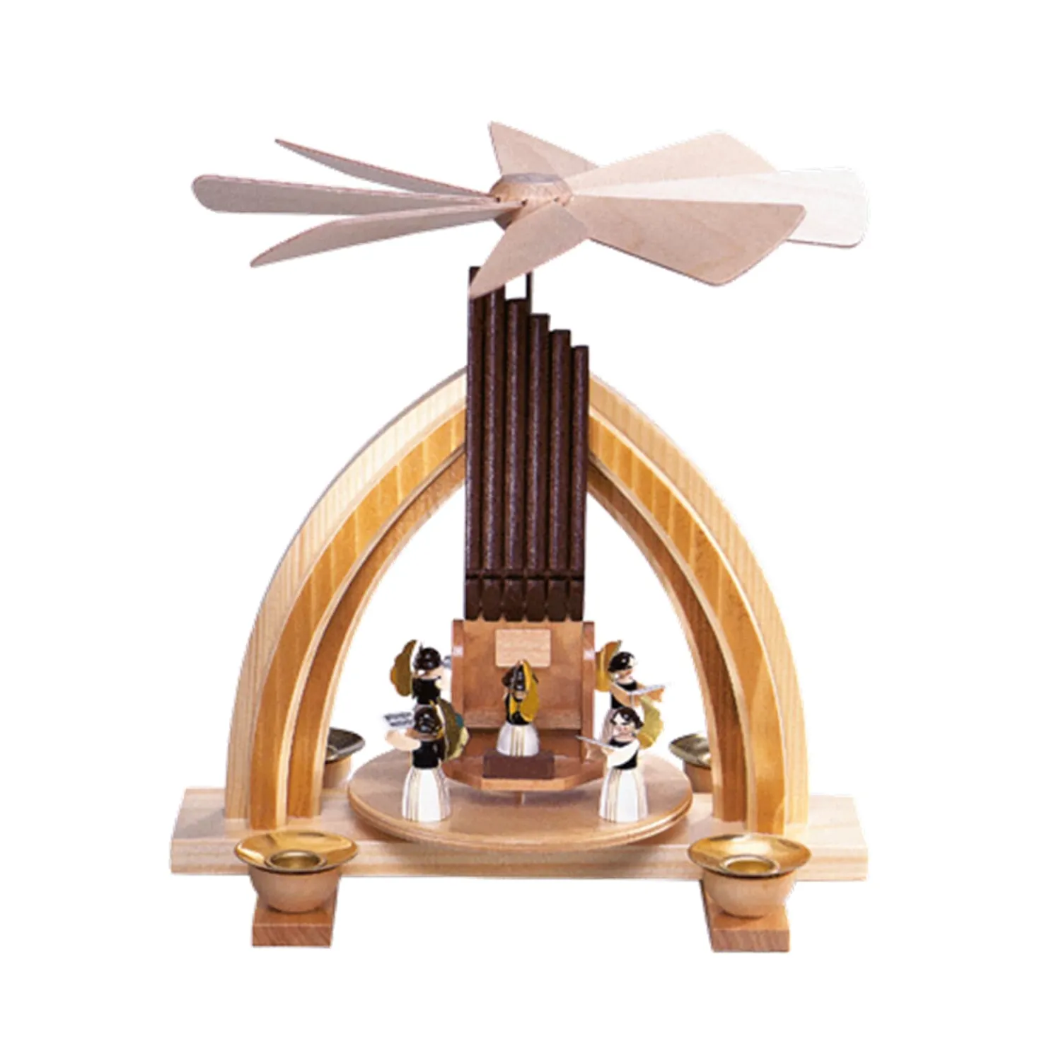 Eine der schönsten Weihnachtstraditionen sind Pyramiden und die Geschichten die sie erzählen. Das durch Kerzenwärme angetriebene Flügelrad zaubert ein wunderbares Spiel aus Licht und Schatten an Decken und Wände.