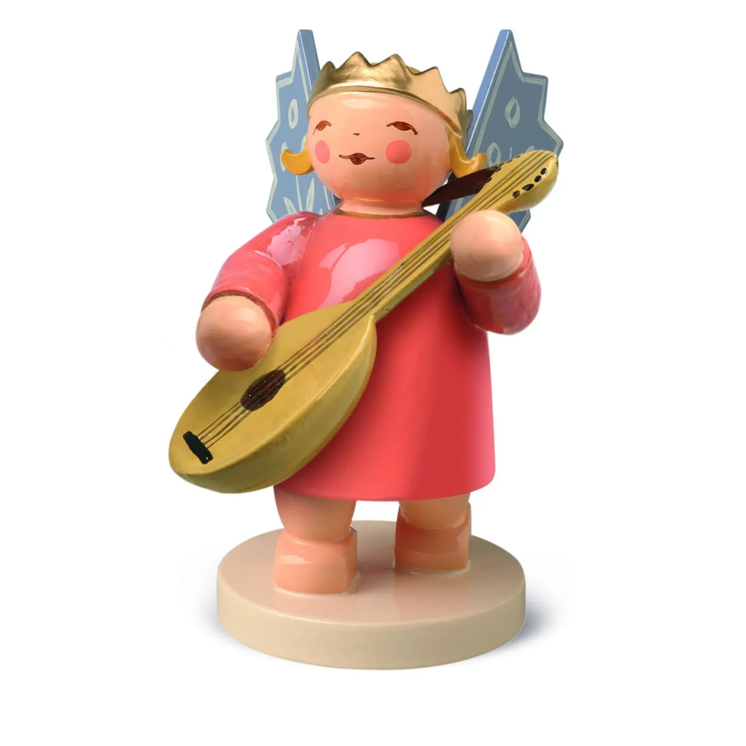 Blaue Flügel, knielanges Kleid, blonder Schopf – so präsentieren sich die himmlischen Kronenengel. Ihren Namen verdanken Sie der goldfarbenen Krone, die ihren Kopf schmückt. Olly Wendt (geb. Sommer), kreative Gestalterin an Grete Wendts Seite, entwarf diese anmutige und zugleich kindlich-fröhliche Figurengruppe bereits vor 1937. Nach fast 80 Jahren kehren die Kronenengel ins Sortiment zurück.