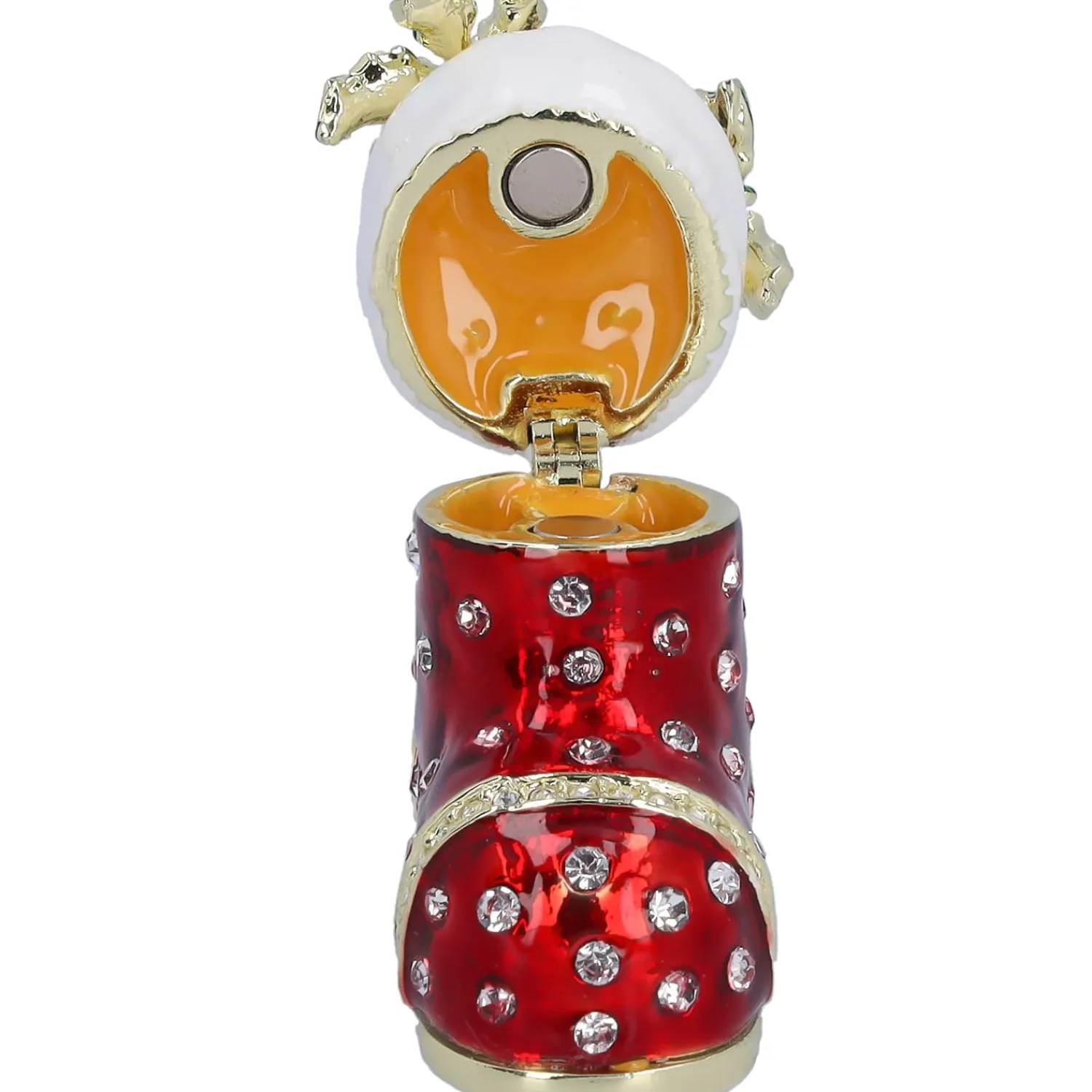 Festlicher Glanz trifft auf praktische Raffinesse! Dieser prachtvoll verzierte Weihnachtsstiefel, geschmückt mit funkelnden Steinen und edlen Akzenten, versprüht puren Weihnachtszauber. Gefüllt mit liebevollen Details wie Zuckerstangen, Geschenken und Tannengrün, verkörpert er die Vorfreude auf die besinnlichste Zeit des Jahres. Doch das Beste: Er ist nicht nur eine wunderschöne Dekoration, sondern auch eine Schatulle, die kleine Geheimnisse oder kostbare Erinnerungsstücke verbirgt. Perfekt als Geschenk oder stilvolle Weihnachtsüberraschung!